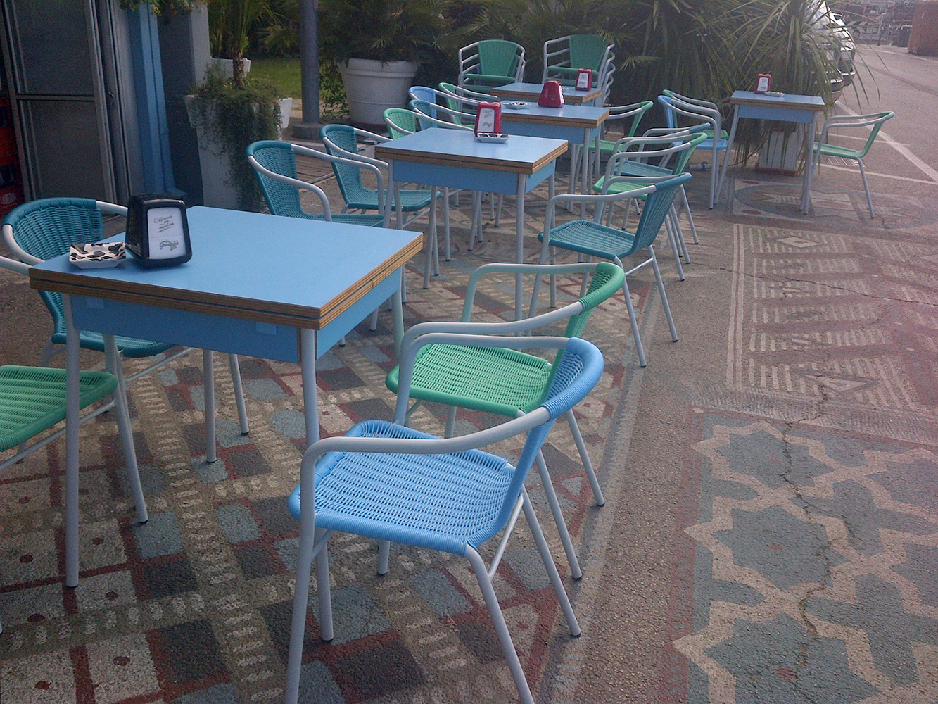 Die Textur des Kunststoffs wird von Experten sorgfältig von Hand gefertigt, da es auf der ganzen Welt keine Maschine gibt, die den Menschen in dieser handwerklichen Tätigkeit ersetzen kann. Noch heute sind an italienischen Küstenstrichen die ersten Stühle des Modells Filoline zu sehen, die die Beständigkeit eines Projekts, das von Beginn an zur intensiven Nutzung und um gegen verschiedenste Wetterlagen resistent zu sein konzipiert wurde.