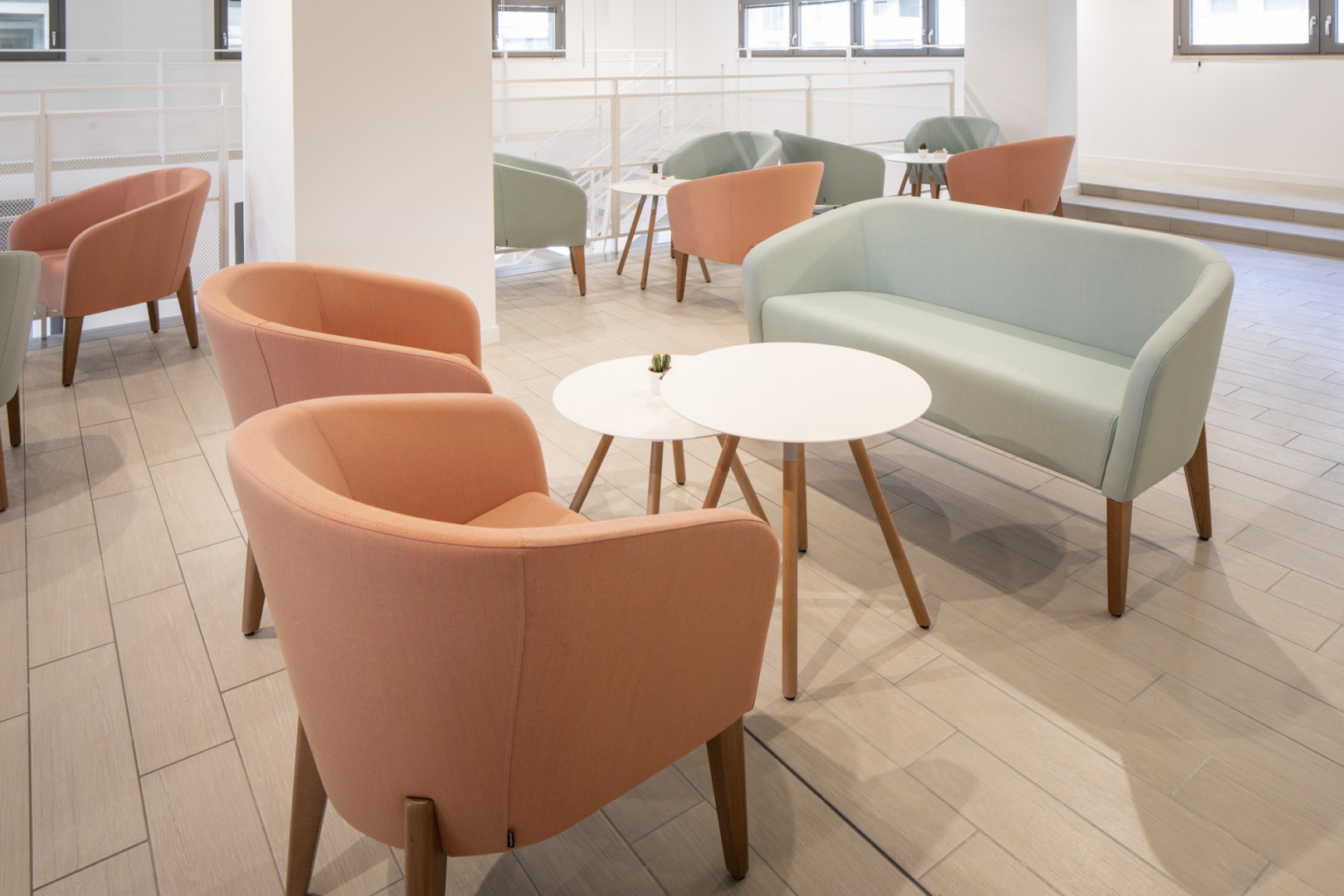 Das Sofa und der Polsterstuhl Kyk interpretieren Tradition auf zeitgenössische Art. Ihre Eigenschaften im Hinblick auf Abmessungen und Ergonomie machen diese Möbelstücke insbesondere für Warteräume, Restaurants und Kommunikationsbereiche geeignet. Sie bestehen aus Polyurethan-Kaltschaum auf einem Metallgestell, zu dem elegante und schmale Beine aus Holz mit natürlicher oder in verschiedenen Finishings gefärbter Oberfläche hinzukommen.
