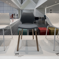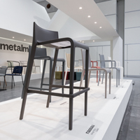 Next to the new products were present at the Metalmobil stand some of the most successful and well-known seats: the iconic Uni, designed by Francesco Geraci, Maré and Flint both the result of the collaboration with Marc Sadler, Ring by Radice Orlandini Design Studio and the Stripes chair by Talocci Design.