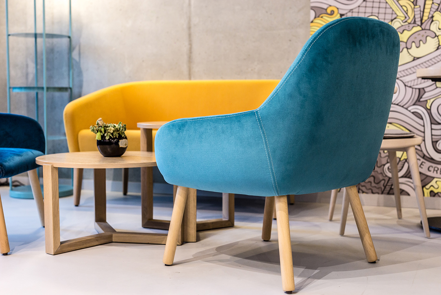 The collection of upholstered seats: Myra, designed by Emilio Nanni. Following the company’s spirit, this family of upholstered seats testifies that idea of comfort that the products by Et al. ensure.