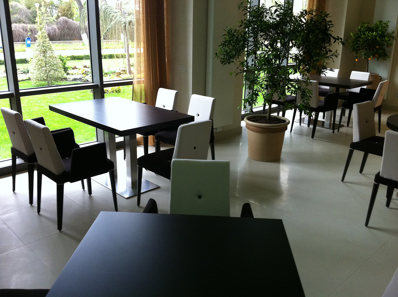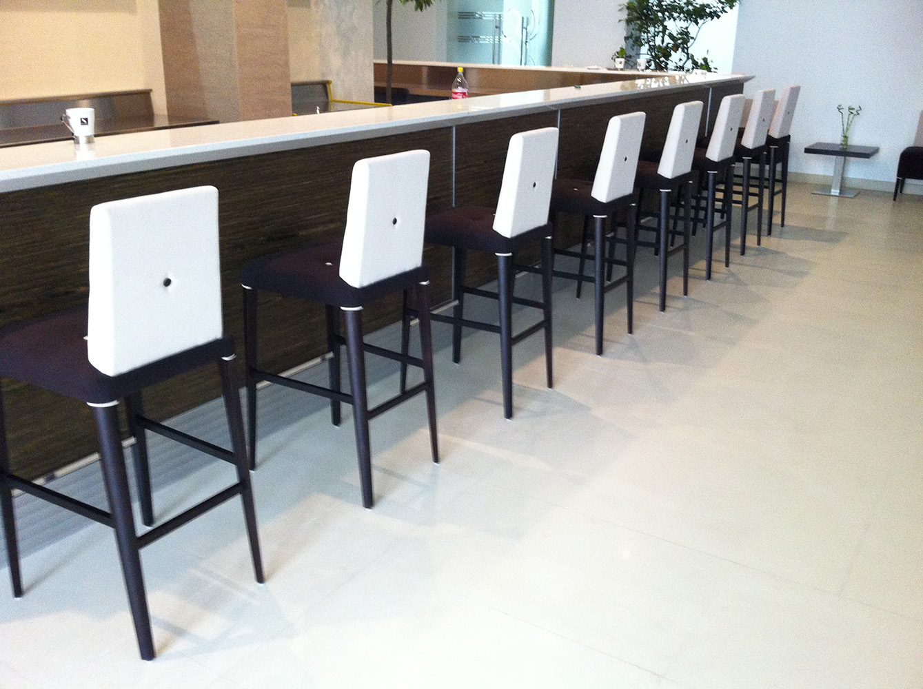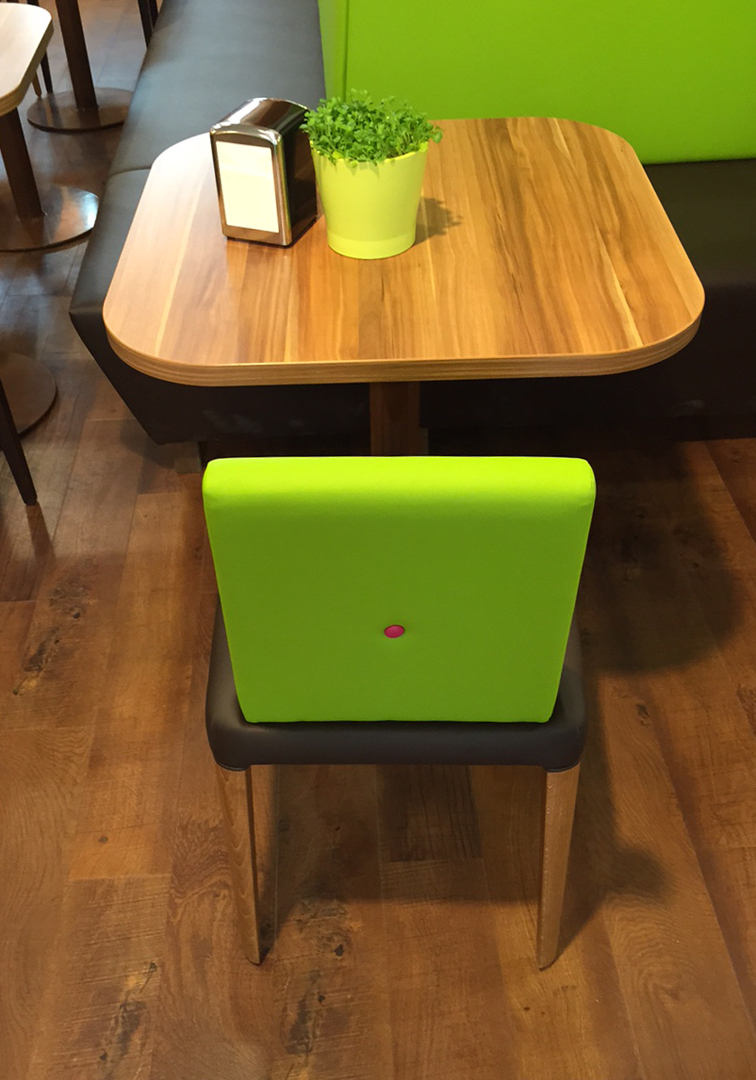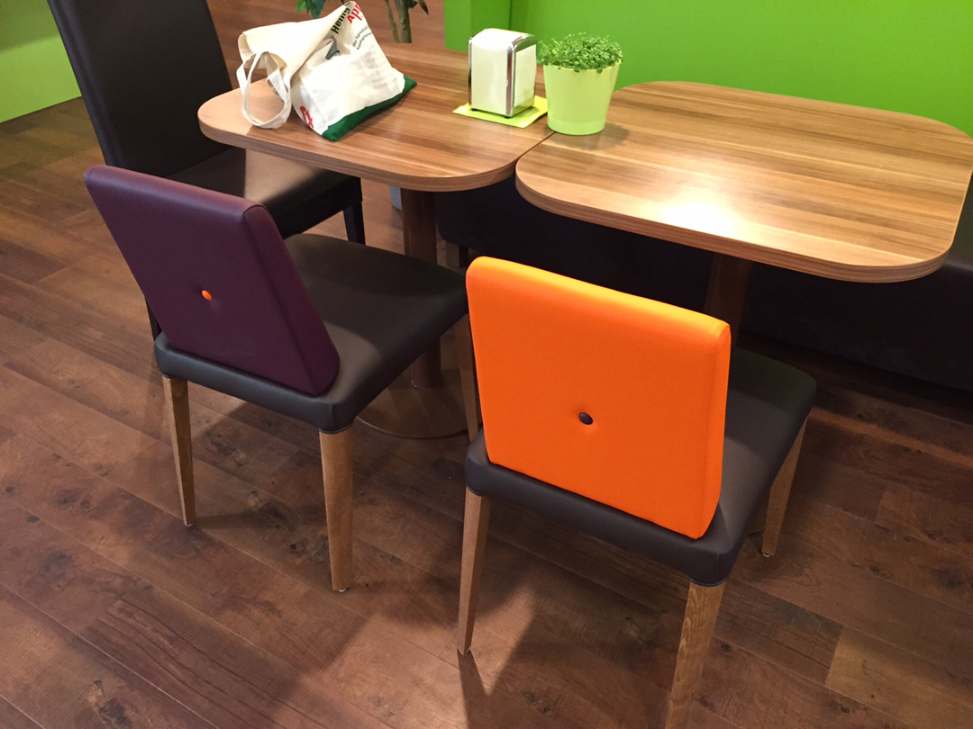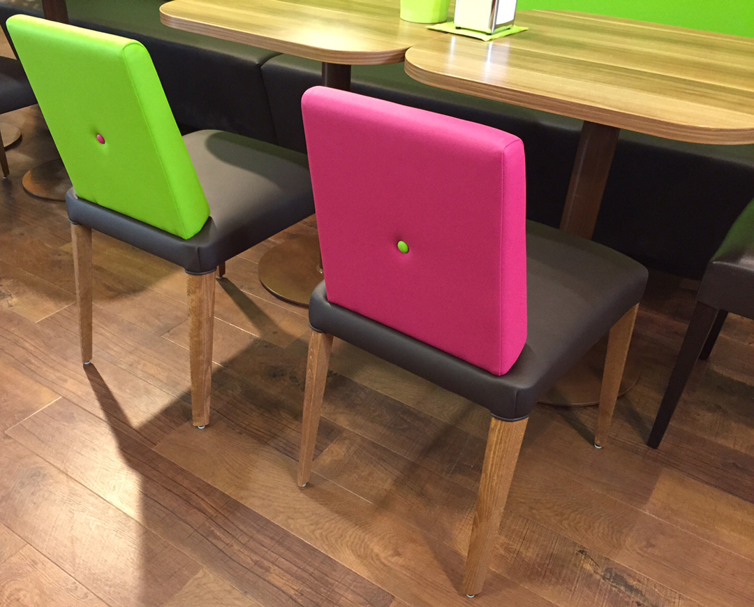 Chair, armchairs and stool, Punto is a complete collection of upholstered products with wooden frames. Suitable for restaurants.