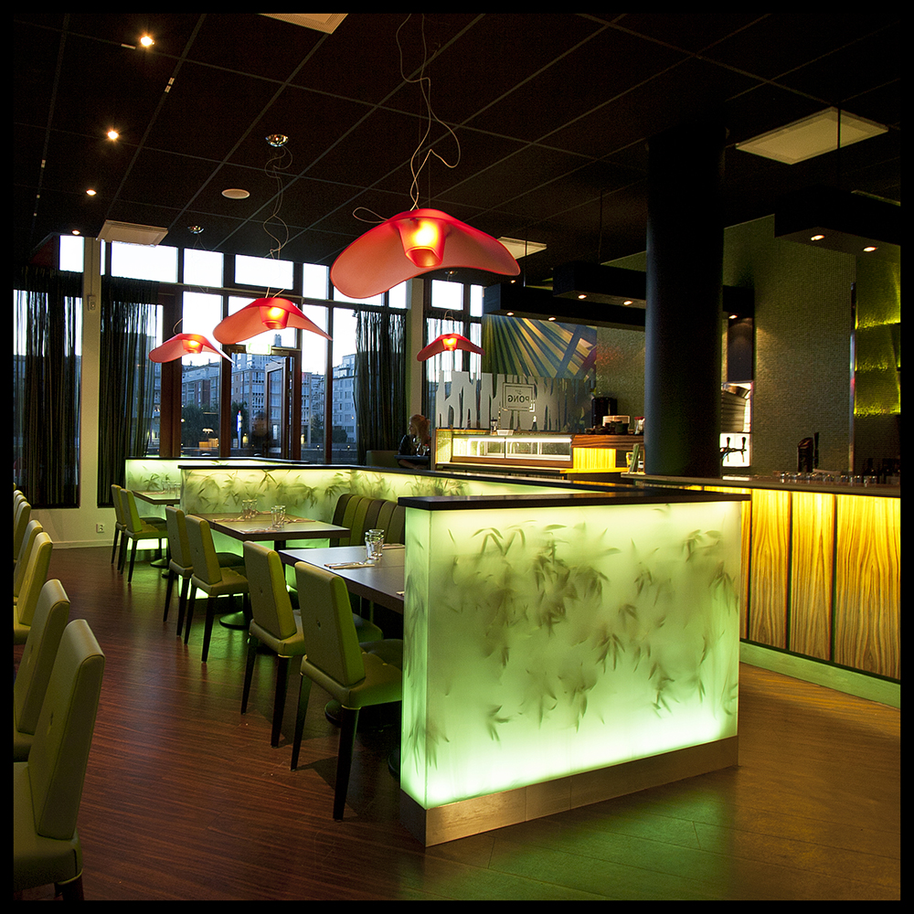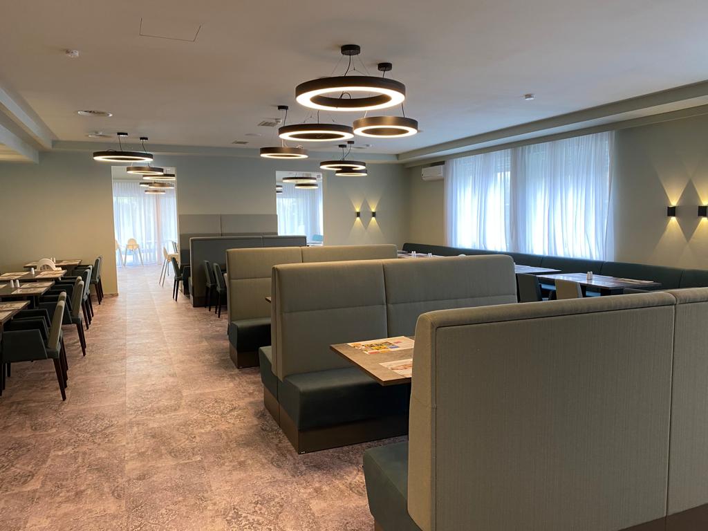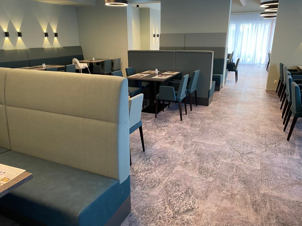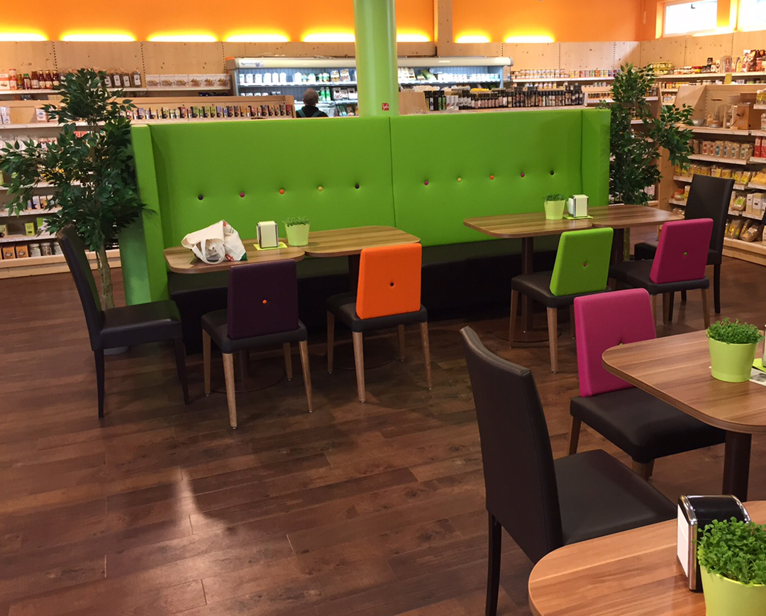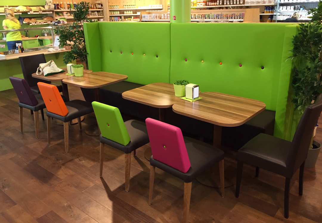 Chair, armchairs and stool, Punto is a complete collection of upholstered products with wooden frames. Suitable for restaurants.