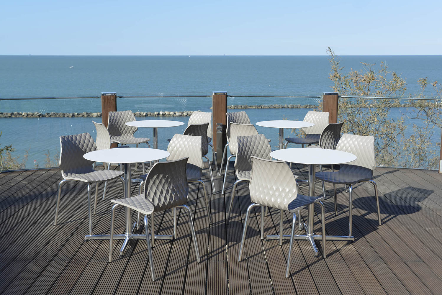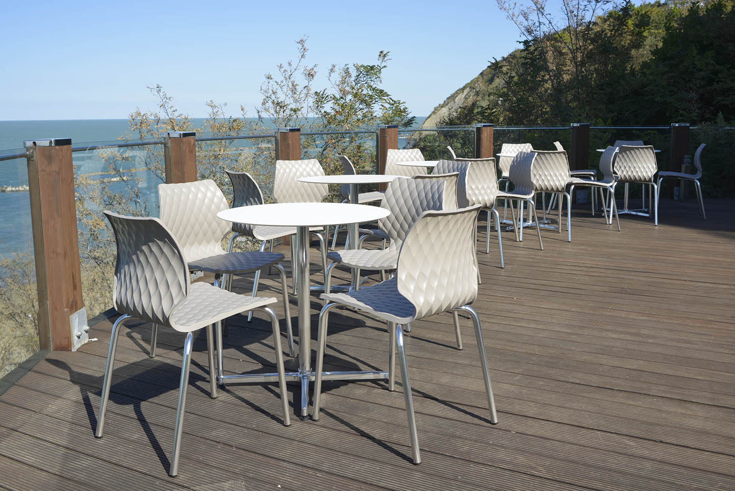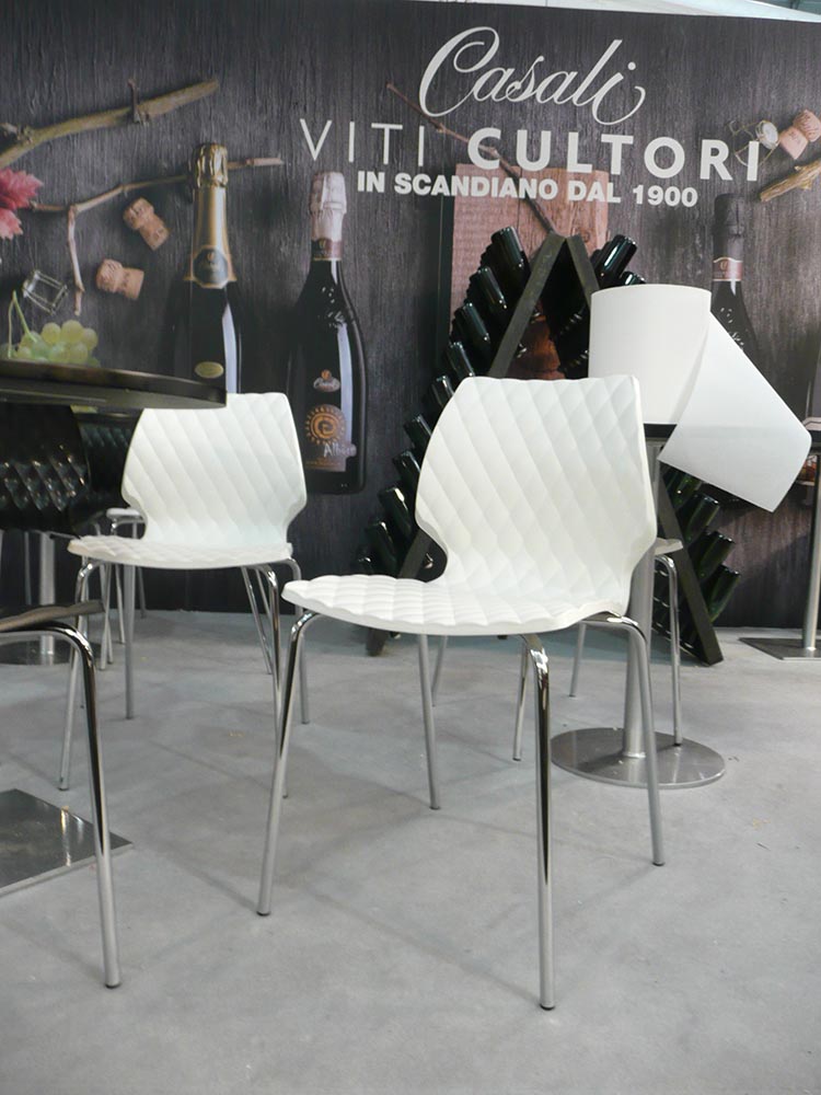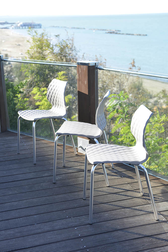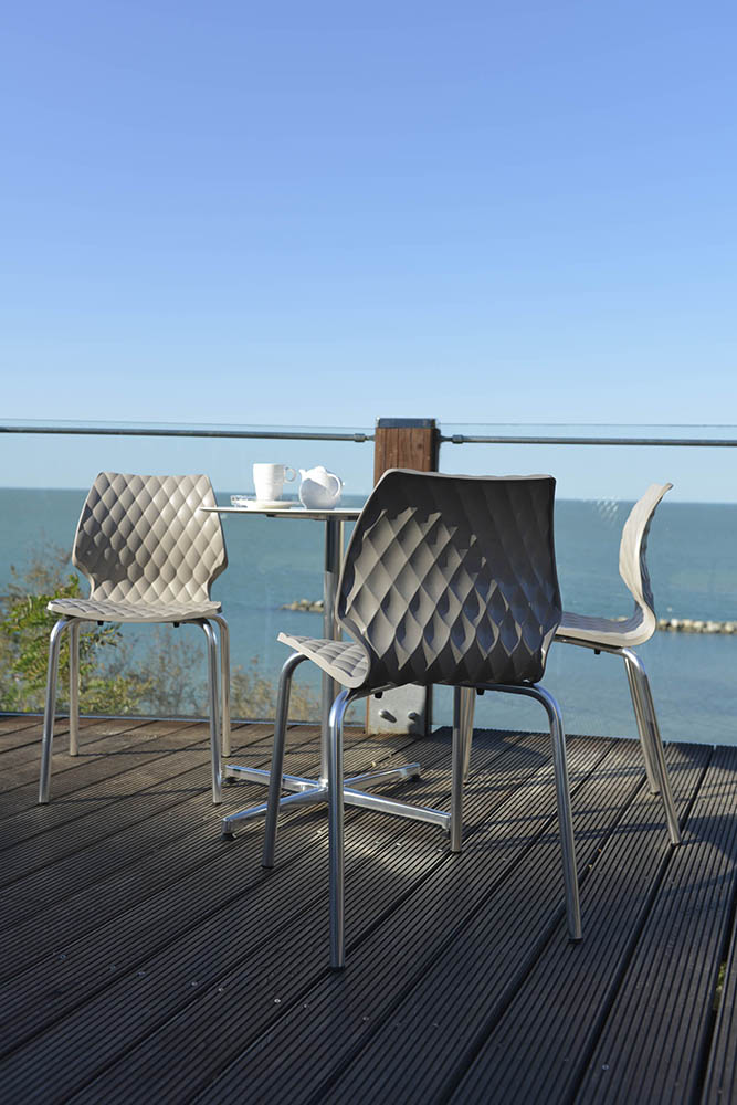 The last project by Francesco Geraci, Uni has become a Et al.’s icon with the same elegance of its designer. Polypropylene seat available in many different colours with an extensive range of steel, wood and aluminium frames. UNI stands out for its effective padded-look texture on the front and shiny finish on the back.