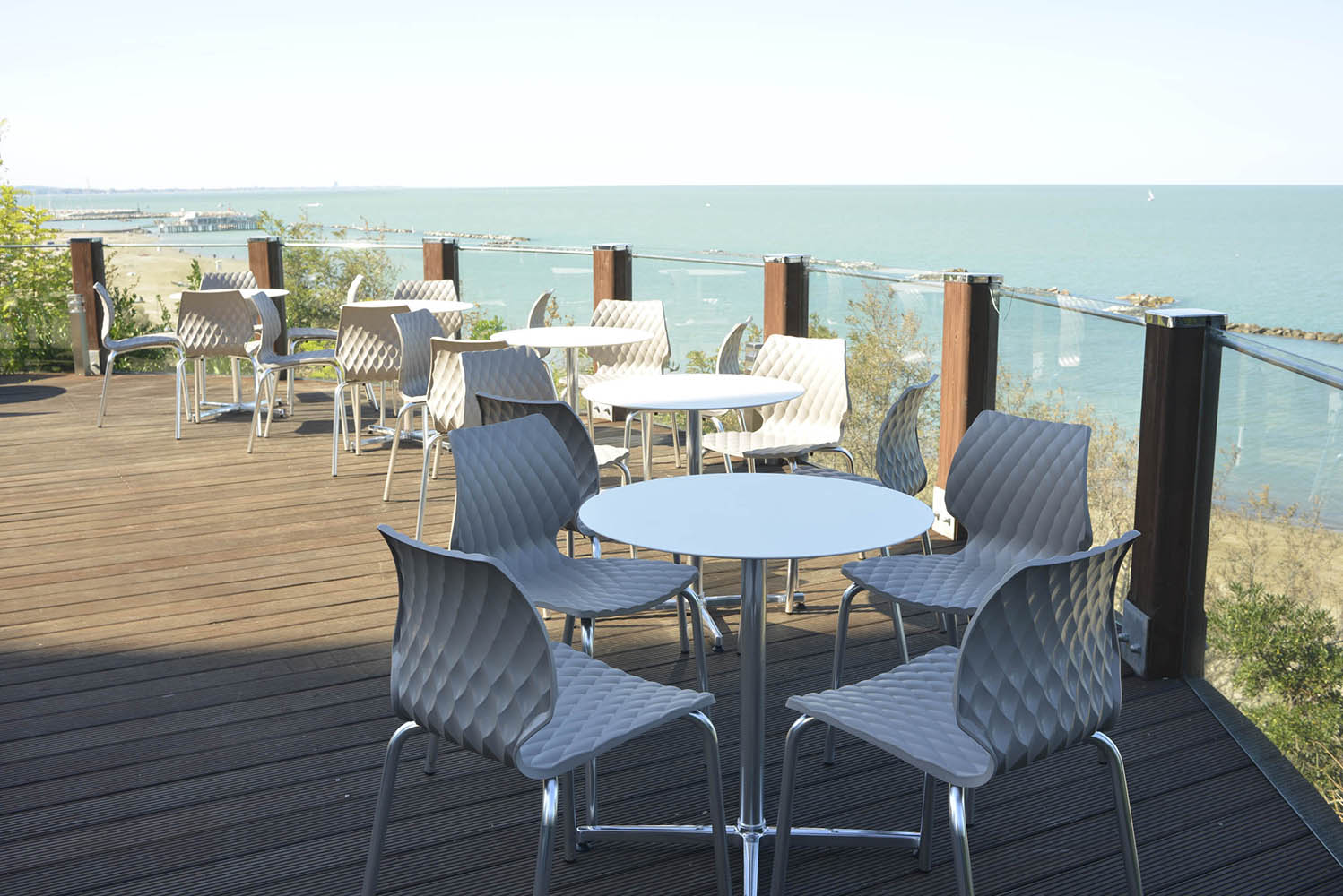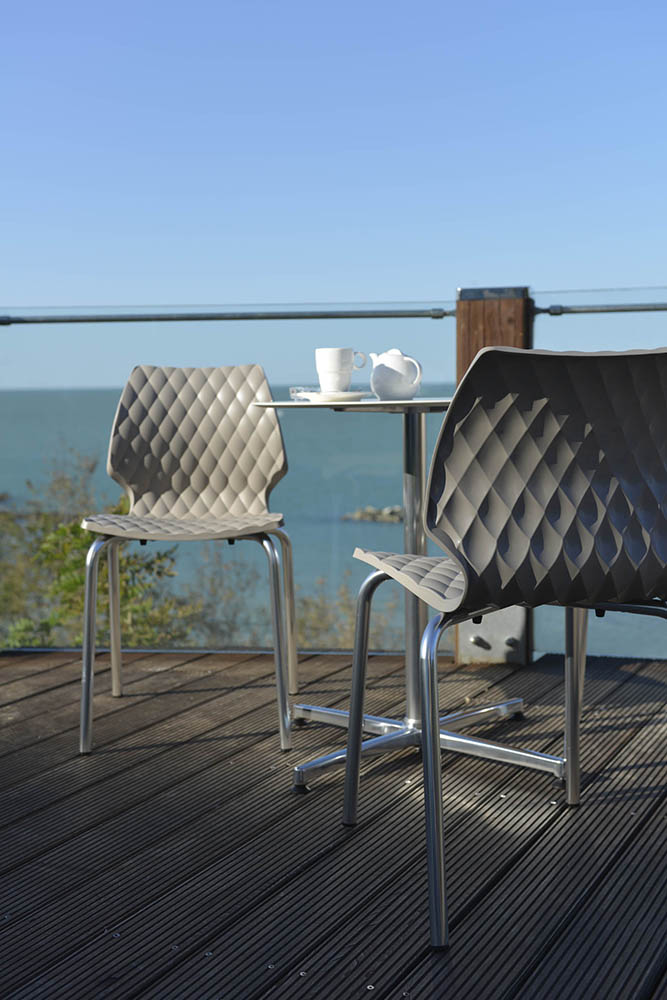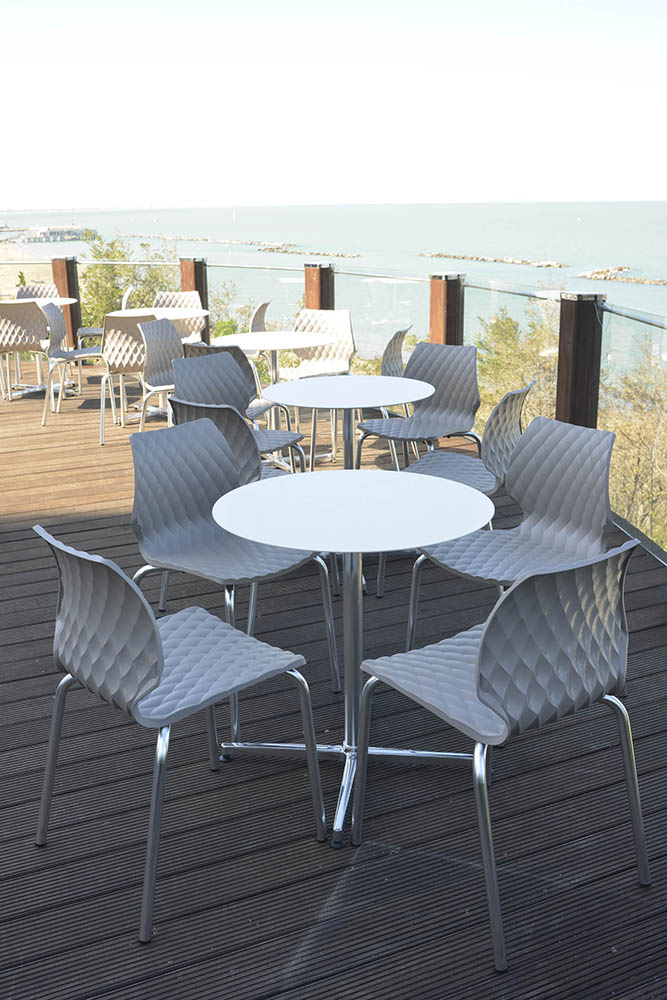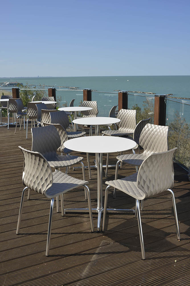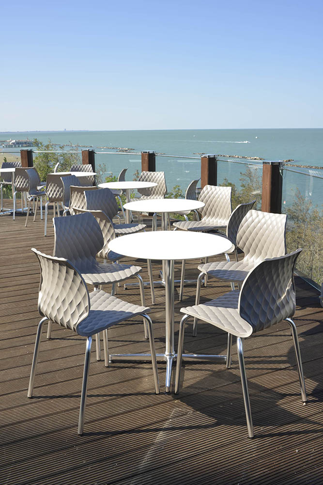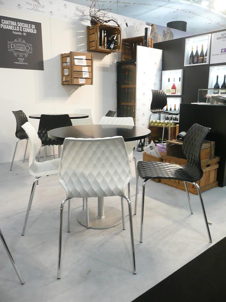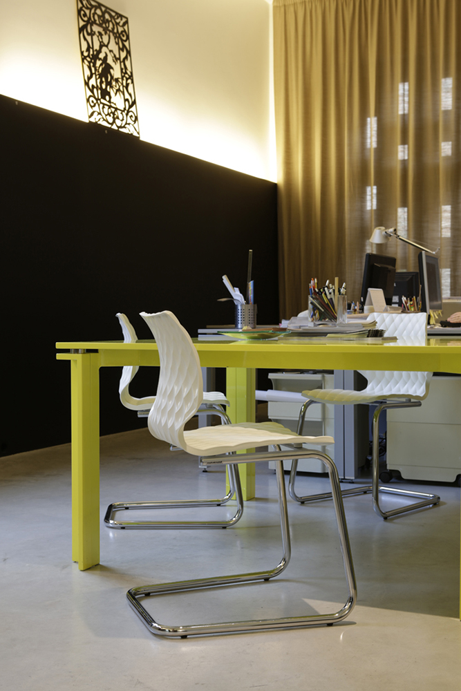 The last project by Francesco Geraci, Uni has become a Et al.’s icon with the same elegance of its designer. Polypropylene seat available in many different colours with an extensive range of steel, wood and aluminium frames. UNI stands out for its effective padded-look texture on the front and shiny finish on the back.