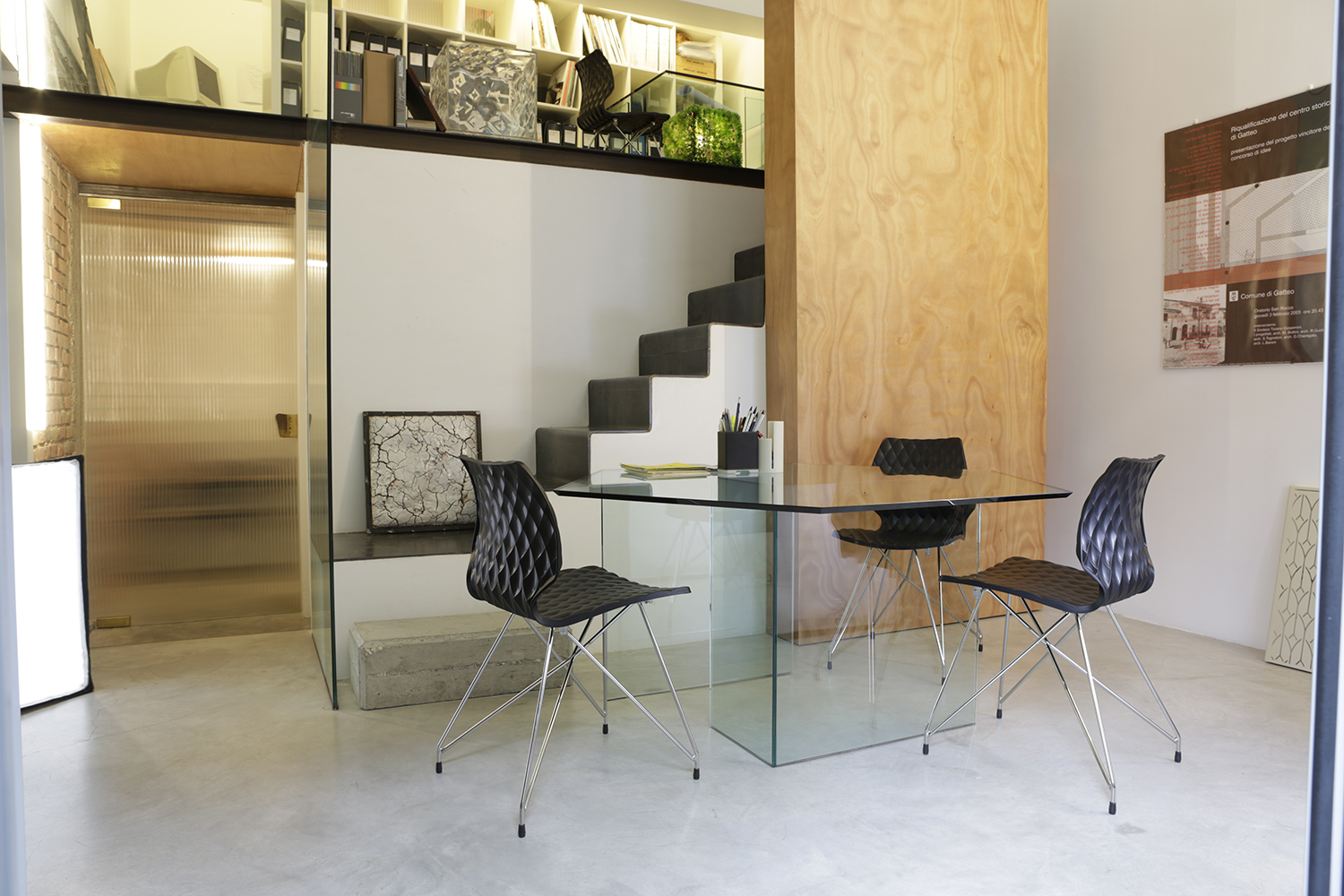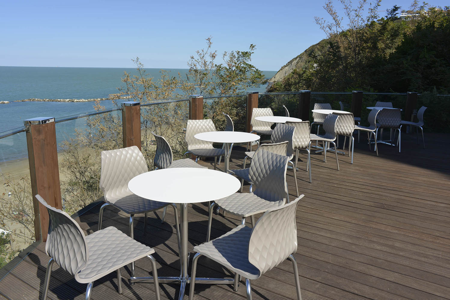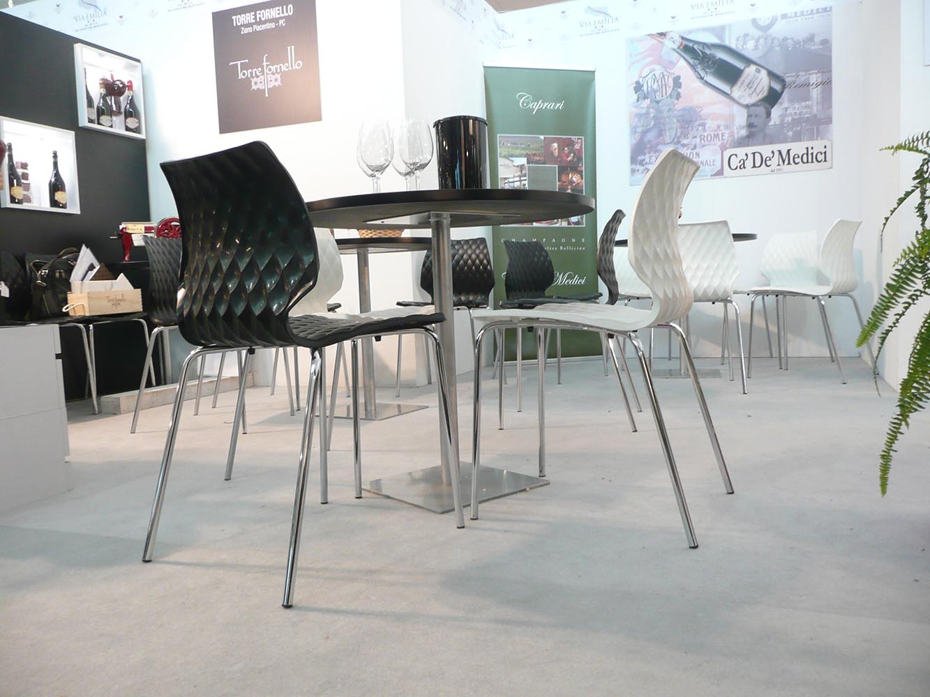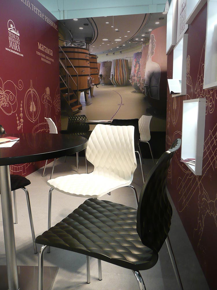 The last project by Francesco Geraci, Uni has become a Et al.’s icon with the same elegance of its designer. Polypropylene seat available in many different colours with an extensive range of steel, wood and aluminium frames. UNI stands out for its effective padded-look texture on the front and shiny finish on the back.