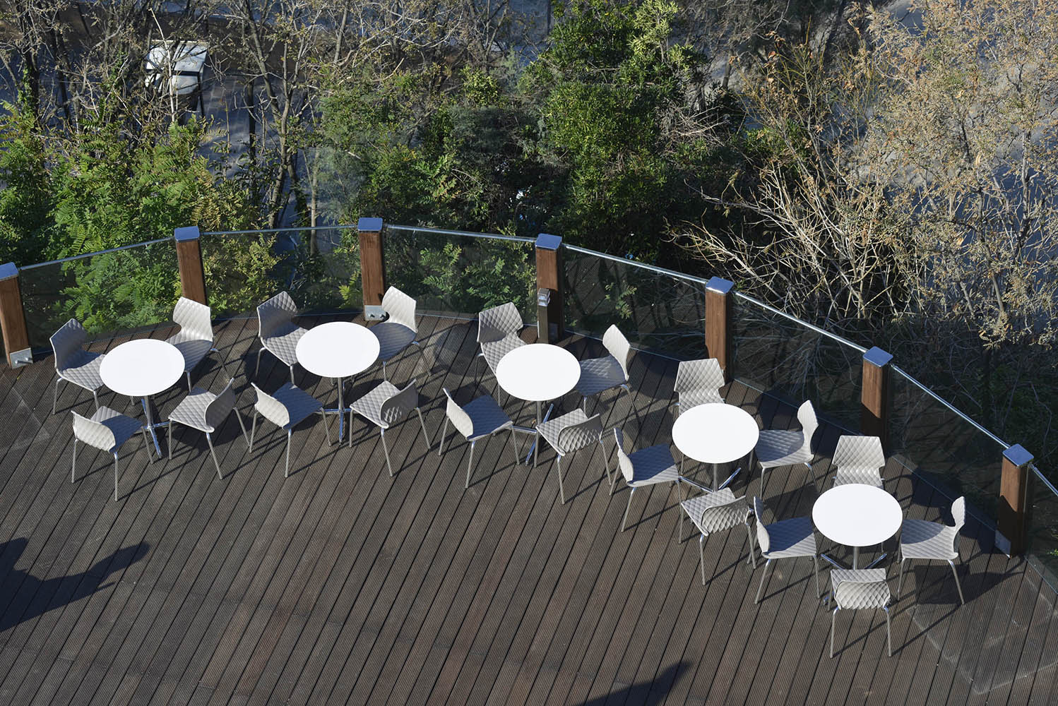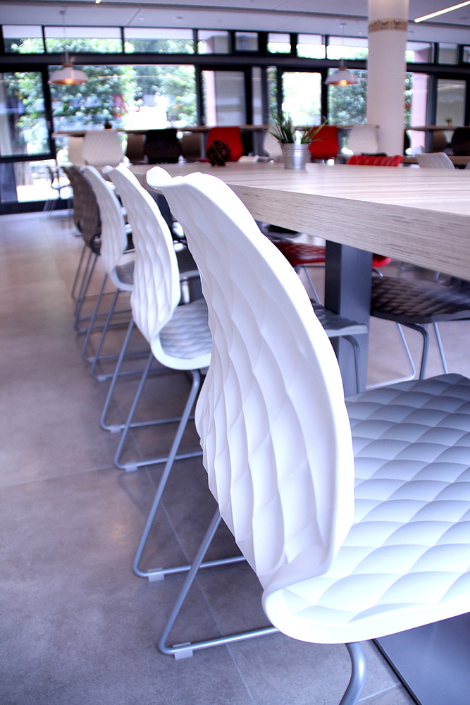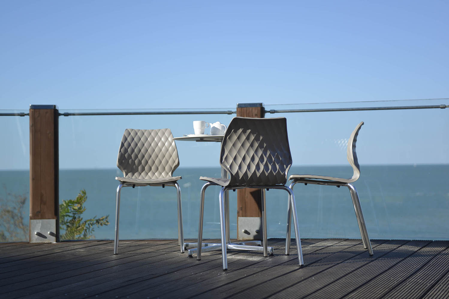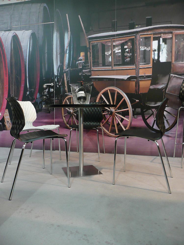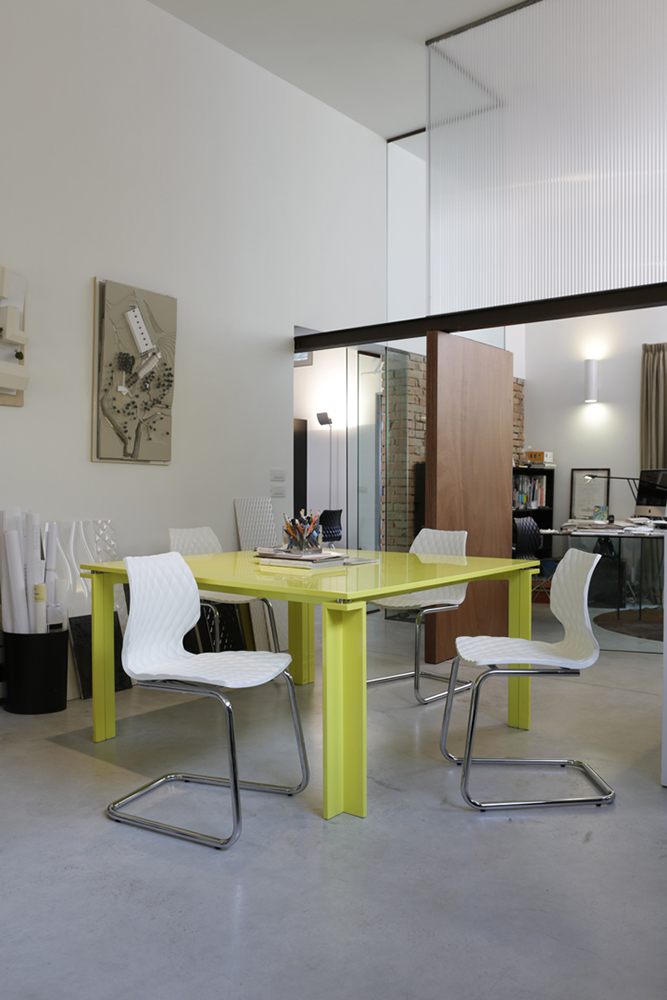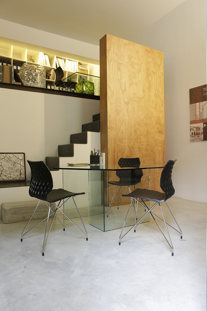 The last project by Francesco Geraci, Uni has become a Et al.’s icon with the same elegance of its designer. Polypropylene seat available in many different colours with an extensive range of steel, wood and aluminium frames. UNI stands out for its effective padded-look texture on the front and shiny finish on the back.