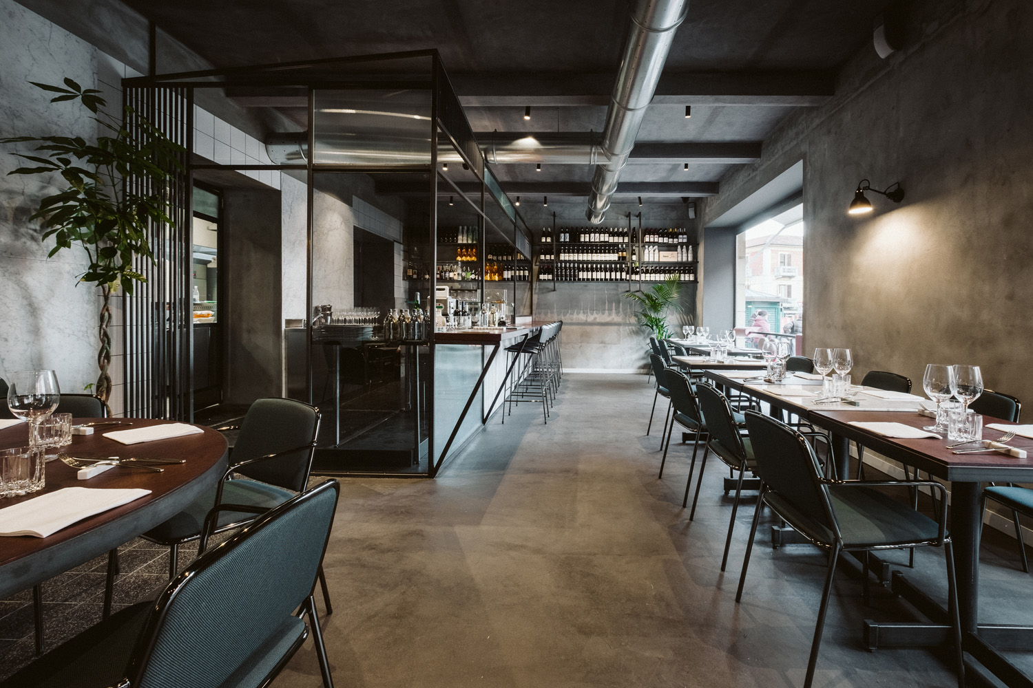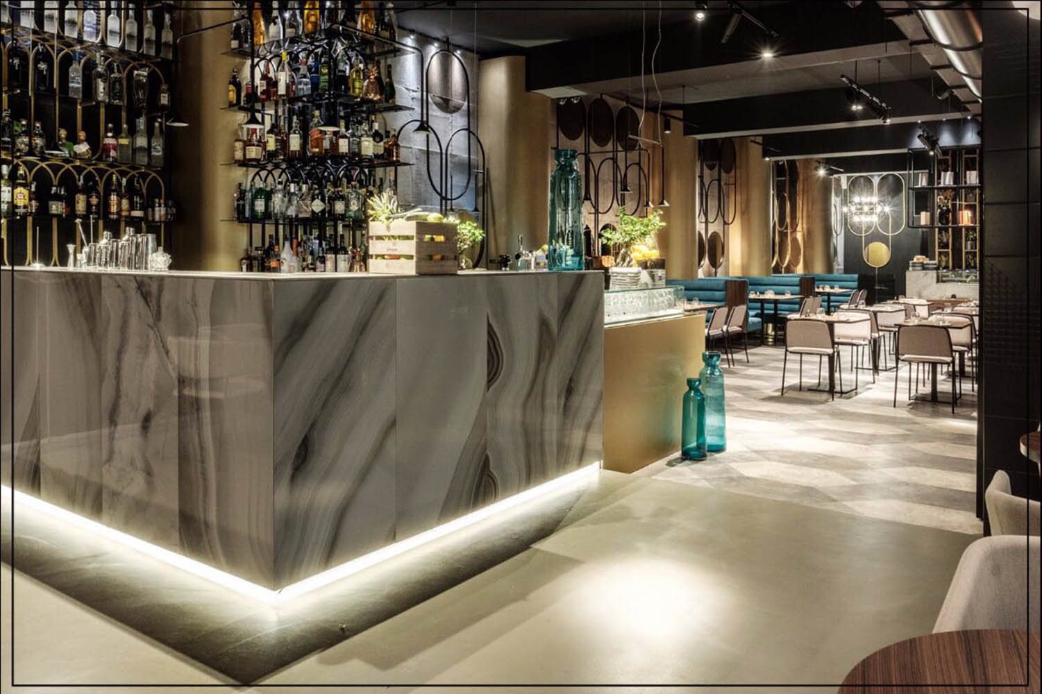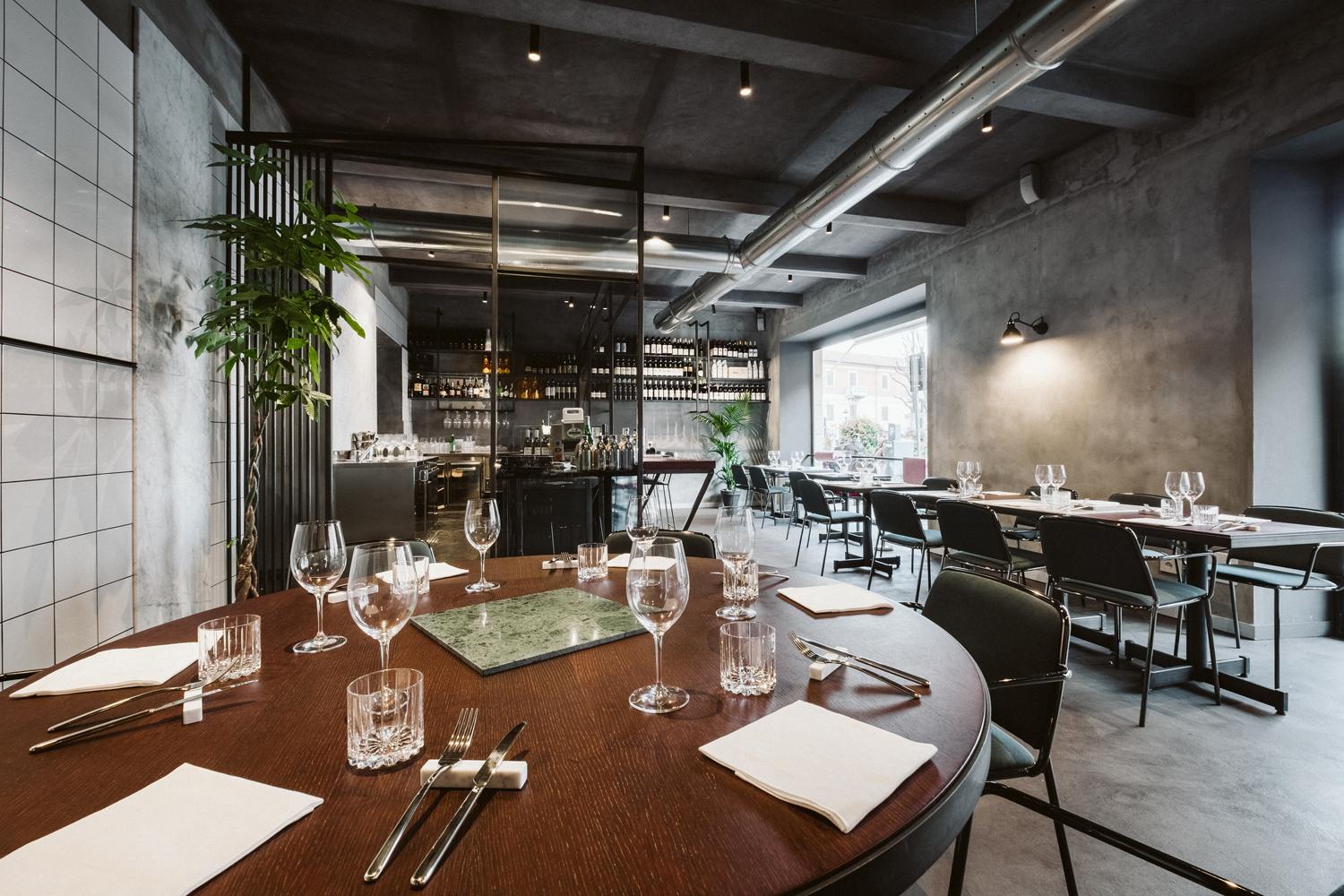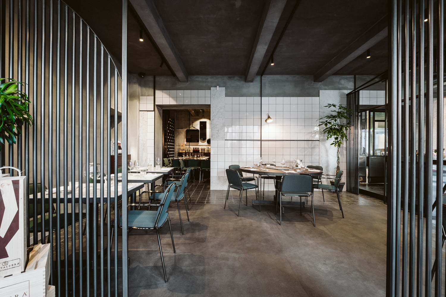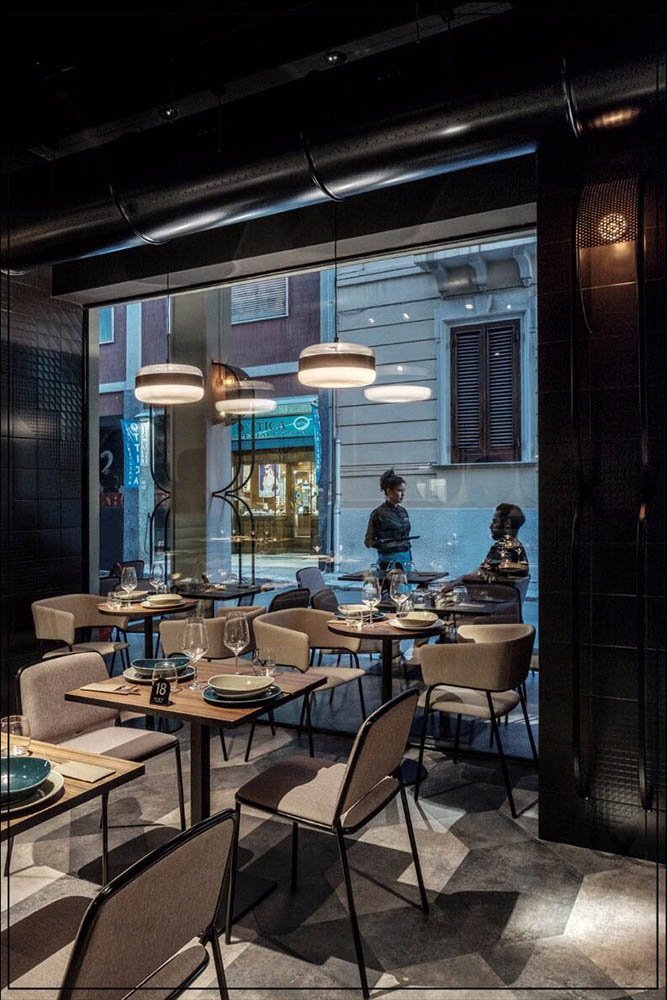 La structure portante se transforme en élément décoratif, « le tube devient une ligne graphique continue qui enlace et supporte les coques rembourrées » (Radice Orlandini Design Studio)