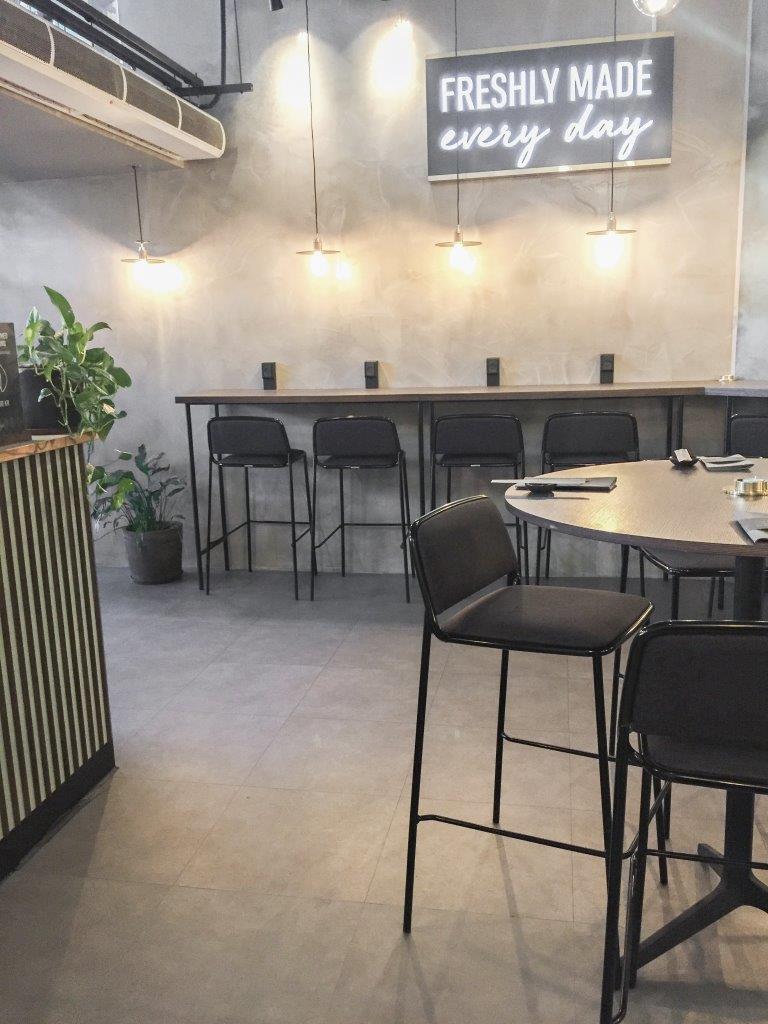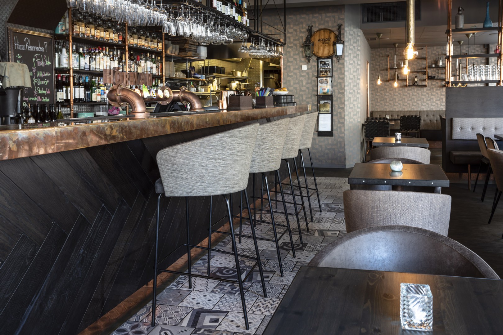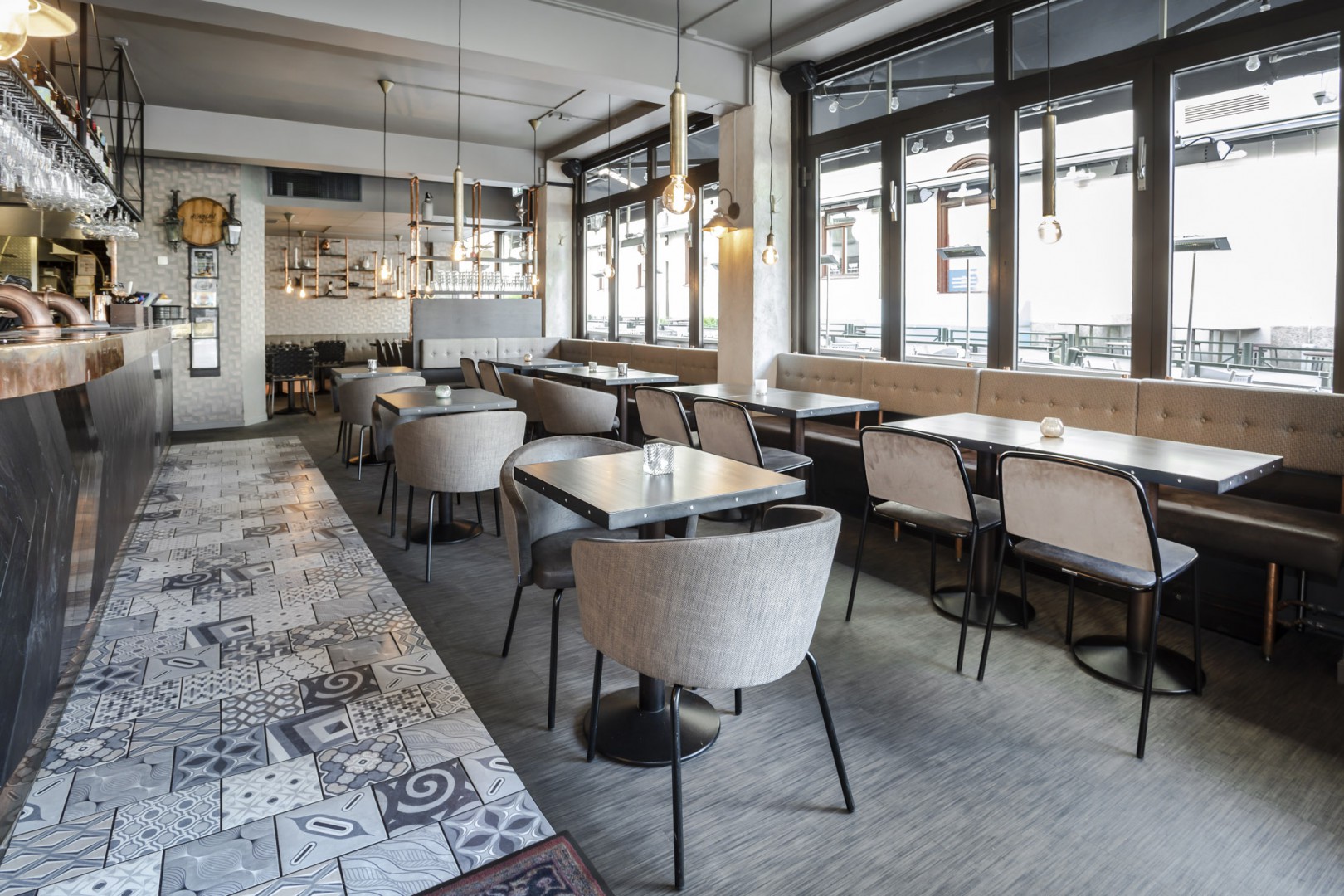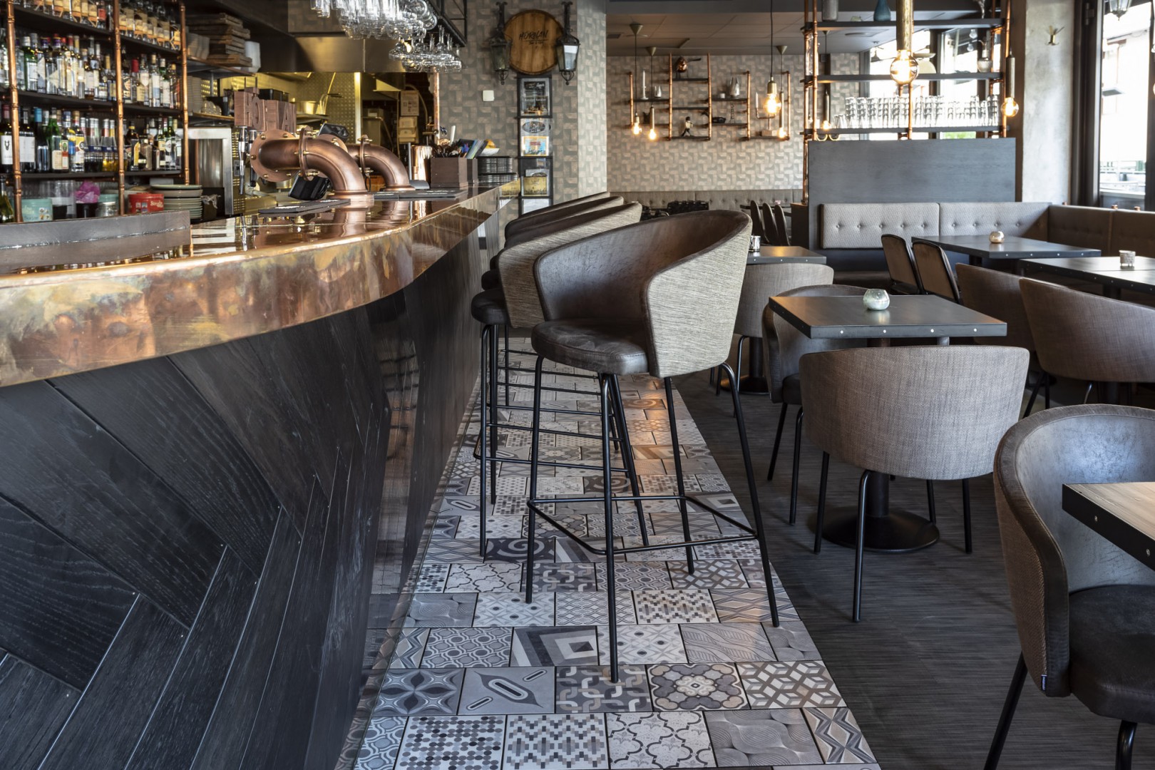 La structure portante se transforme en élément décoratif, « le tube devient une ligne graphique continue qui enlace et supporte les coques rembourrées » (Radice Orlandini Design Studio)