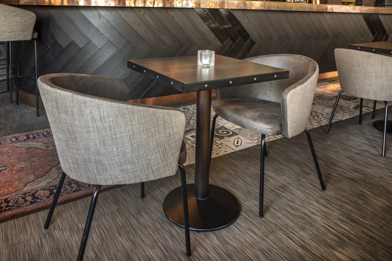 Ligne de sièges composée de chaises, fauteuils et tabourets, caractérisée par une linéarité extrême et par une grande simplicité de construction : châssis monobloc en tubulaire d’acier avec l’ajout de deux coussins visant à créer un ensemble souple, léger et fonctionnel.