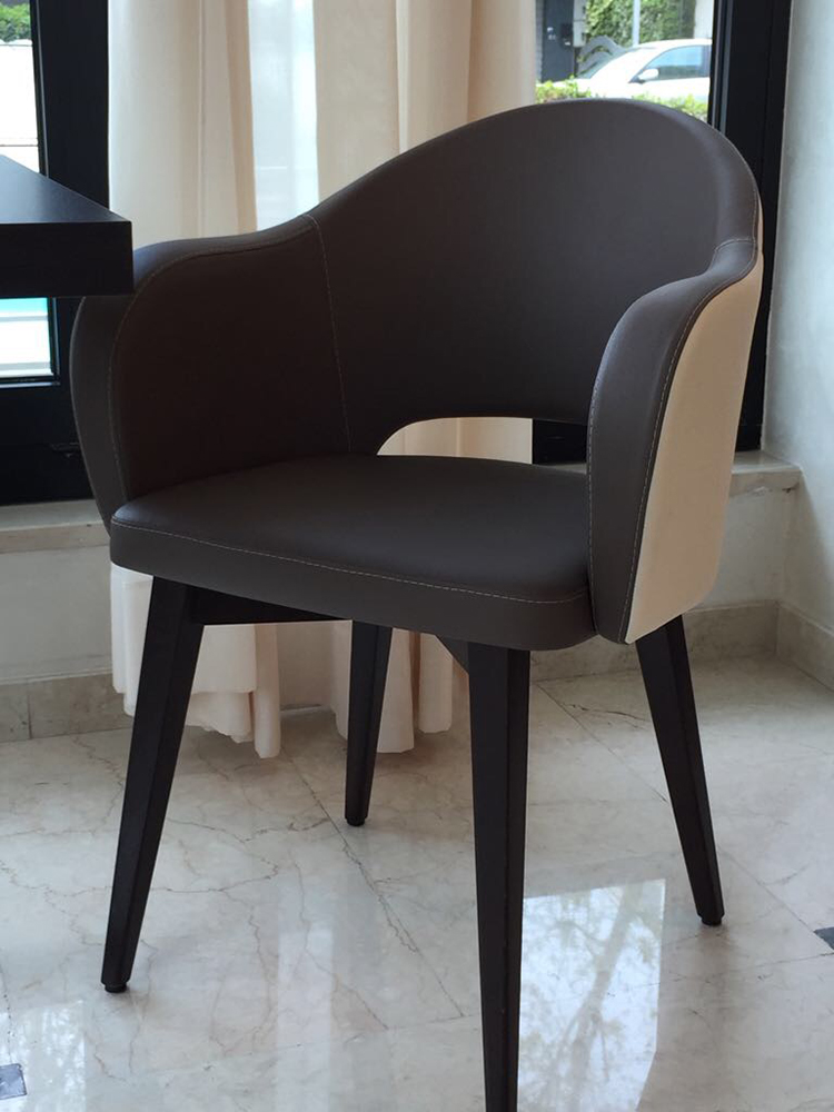 Un omaggio al confort e all’eleganza, in una poltroncina dalle forme generose e avvolgenti. Linee di richiamo classico si esprimono attraverso materiali e tecniche moderne, bene evidenti nell’accoppiamento bicolore sedile-schienale, per restituire in una soluzione contemporanea la raffinatezza senza tempo di una seduta adatta ad ambienti esclusivi.