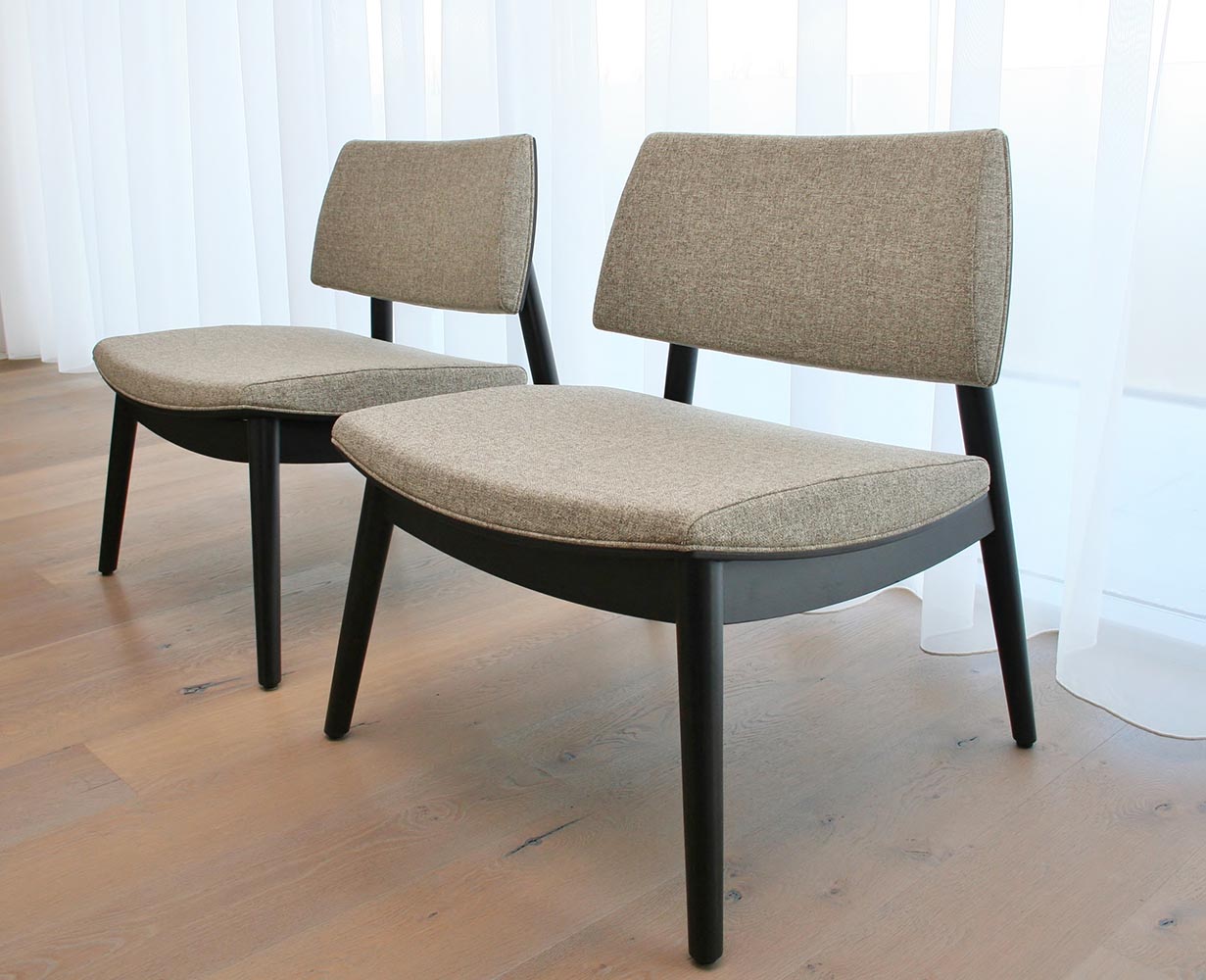 To-kyo è una collezione di sedute che nasce ricordando la tradizione arcaica della modellazione del legno, unita con l'essenzialità della lavorazione sferica di recente tecnologia. Questo progetto è generato dunque da una combinazione di espressioni derivanti da due differenti modalità di trattare il legno: la curvatura del compensato e la lavorazione del massello ottenuta da tornitura. Le combinazioni di queste lavorazioni creano le strutture di queste sedute. Cuscini in poliuretano stampato, perfettamente aderenti a seduta e schienale completano il prodotto.