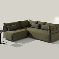 Divano 3 posti con braccioli. Seduta, schienale e braccioli imbottiti, rivestimento in tessuto. Telaio in tubo acciaio.
