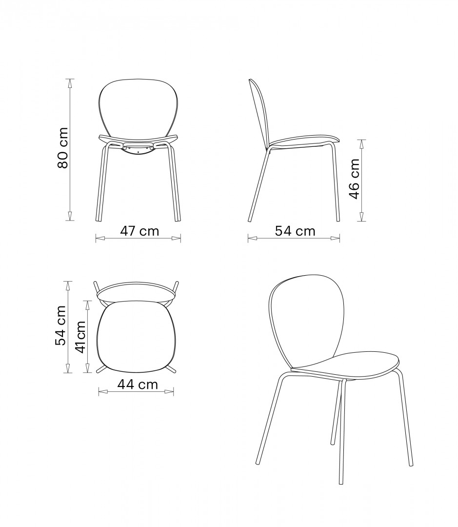 Sedia Design: Sedia con telaio 4 gambe in tubo acciaio, seduta e schienale in compensato curvato (frassino). |