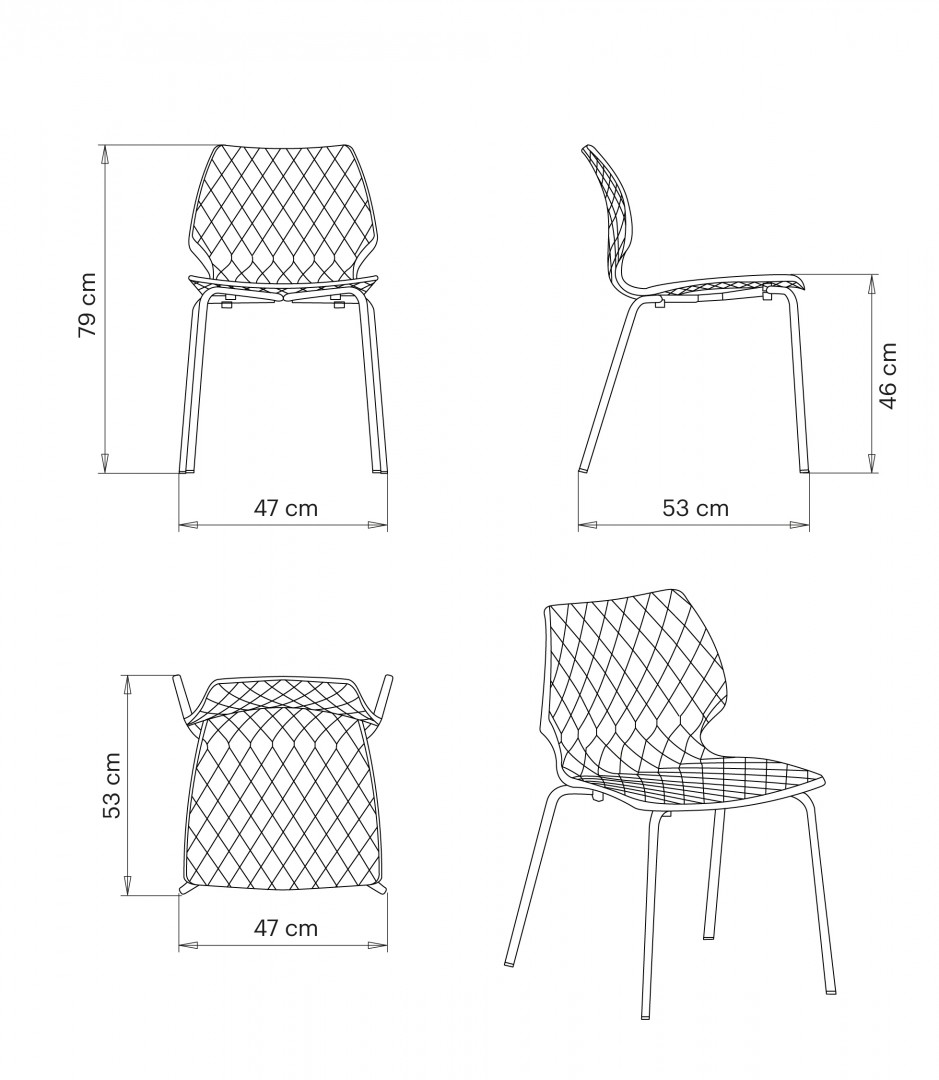 Sedia Design: Sedia con telaio a 4 gambe in tubo acciaio. Seduta in polipropilene con finitura metallica satinata. |